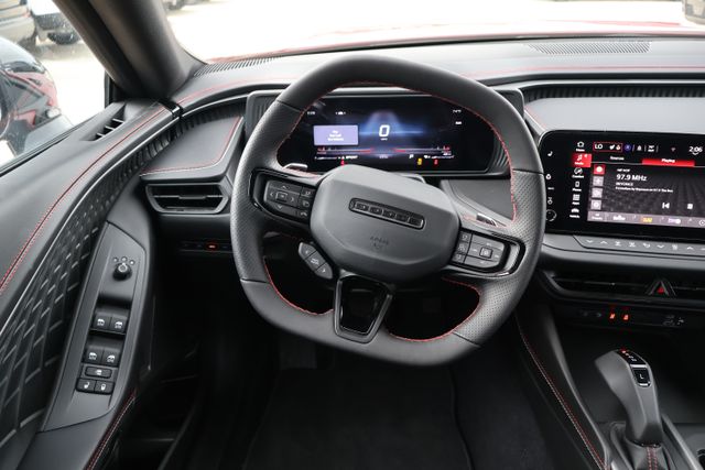 Complementing the Charger R/T's performance is a bold and distinctive exterior, highlighted by the iconic Dodge styling cues. The Red paint finish and available Two Tone Paint Group create a striking visual presence that commands attention. Step inside, and you'll be greeted by a premium cabin featuring Leatherette/Cloth Performance Seats, a Heated Steering Wheel, and a host of advanced connectivity and driver assistance features.
