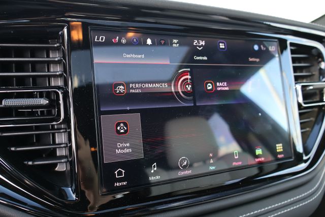 Step inside the cabin, and you'll be enveloped in a world of luxury and technology. Enjoy the premium Leather/Suede Wrapped Steering Wheel, the Suede Headliner, and the Supercharged Sill Plate, which all contribute to an exceptional level of craftsmanship and attention to detail. The Uconnect 5 Nav system with a 10.1" display provides seamless connectivity and intuitive control, while the 19 Harman/Kardon Amplified Speakers with an 825 Watt Amplifier deliver a concert-hall-quality audio experience.
