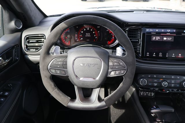 Safety and convenience are also at the forefront of the Durango SRT Hellcat Jailbreak's design. Features like Adaptive Cruise Control with Stop, Blind Spot with Trailer Detection, and Full Speed Forward Collision Warning Plus ensure you and your passengers are well-protected, while the Power Liftgate and 2nd Row Fold/Tumble Captain Chairs offer exceptional versatility and practicality.