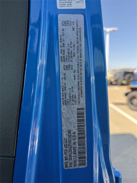 South Fork Chrysler Jeep Dodge Ram is pumped up to offer this beautiful-looking and fun 2026 Jeep Wrangler in Hydro Blue Pearl Coat. This vehicle has passed our comprehensive inspection and comes with the following features: 2026 Wrangler Willys 2-Door Passive Entry, Front Door Locks, 35" Tire Suspension, 4-Wheel Drive Swing Gate Decal, 4.56 Rear Axle Ratio, 7 and 4 Pin Wiring Harness, Advanced Brake Assist, Air Conditioning with Auto Temp Control, Air Filtering, Anti-Lock 4-Wheel Disc Perf Brakes, Automatic Headlamps, Auxiliary Switches, Black Grille, Class II Receiver Hitch, Cluster 7.0" TFT Color Display, Convenience Group, Conventional Differential Front Axle, Corning Gorilla Glass, Dana M210 Wide HD Tube Front Axle, Dana M220 Wide Rear Axle, Daytime Running Lamps LED Accents, Deep Tint Sunscreen Windows, E-Locker Rear Axle, Emergency/Assistance Call, Enhanced Adaptive Cruise Control, Front LED Fog Lamps, Full Speed Forward Collision Warning Plus, Heated Front Seats, Heated Steering Wheel, Injection Molded Black Rear Bumper, LED Premium Reflector Headlamps, Mold in Color Bumper with Gloss Black, Molded in Color Rubicon Highline Flare, MOPAR All-Weather Floor Mats, MOPAR Hinge-Gate Reinforcement, MOPAR Jack Spacer, MOPAR Tire Relocation Kit, Off-Road Plus Mode, Power Heated Mirrors, Premium Wrapped Steering Wheel, Quick Order Package 24W Willys, Security Alarm, Sun Visors with Illuminated Vanity Mirrors, Universal Garage Door Opener, Wheel Flare Extensions, Wheels: 17" x 7.5" Painted Black, Wheels: 17" x 8" Machined with Black Pockets, Willy's Suspension, Willys Hood Decal, Xtreme 35 Tire Package.