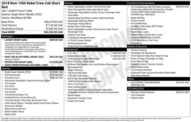 We invite you to visit our showroom and take this impressive truck for a test drive. Discover the power and versatility that the 2018 Ram 1500 Rebel has to offer, and let us help you find the perfect vehicle to meet your needs. Our knowledgeable sales team is here to guide you through the process and ensure you drive away in the truck of your dreams.