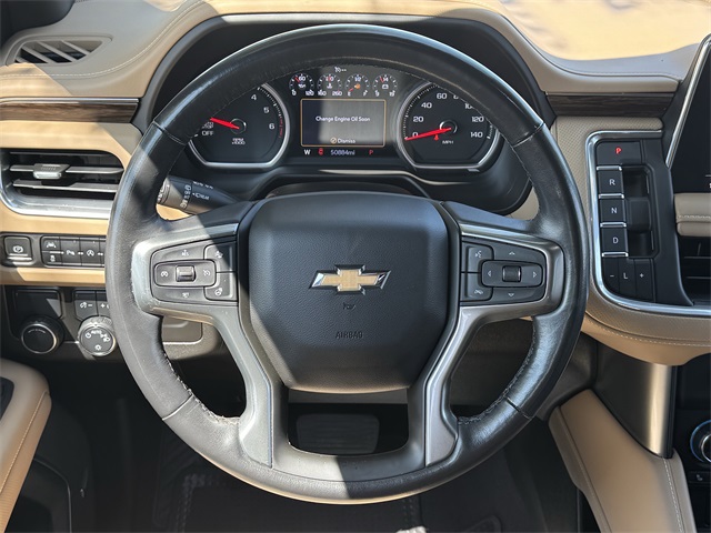 South Fork Chrysler Jeep Dodge Ram is excited to offer this fantastic-looking 2021 Chevrolet Tahoe in Empire Beige Metallic. This vehicle has passed our comprehensive inspection and comes with the following features: Clean CARFAX. Odometer is 31759 miles below market average! Jet Black/Maple Sugar Leather, 12-Way Power Driver & Passenger Seat Adjusters, 1st & 2nd Row Color-Keyed Carpeted Floor Mats, 2 USB Data Ports, 20" x 9" Polished Aluminum Wheels, 3rd Row 60/40 Power-Folding Split-Bench Seat, 3rd row seats: split-bench, Adaptive suspension, Alloy wheels, Apple CarPlay/Android Auto, Auto-Dimming Inside Rear-View Mirror, Auto-leveling suspension, Automatic Heated Steering Wheel, Bose 10-Speaker Centerpoint Surround Audio Sys Ft, Bright Front & Rear Door Sill Plates, Chrome Door Handles w/Body-Color Strip, Chrome Mirror Caps, Color-Keyed Carpeting Floor Covering, Driver & Front Outboard Passenger Airbags, Dual Exhaust System, Enhanced Driver Information Center, Floor Console w/Storage Area, Front & Rear Park Assist, Front Bucket Seats, Hands-Free Rear Power Programmable Liftgate, HD Radio, Heated & Ventilated Driver & Front Passenger Seats, Heated 2nd Row Outboard Seats, Heated door mirrors, Heated Driver & Front Passenger Seats, Heated steering wheel, Illuminated entry, Infotainment Display, Lane Change Alert w/Side Blind Zone Alert, Lane Keep Assist w/Lane Departure Warning, Leather-Wrapped Steering Wheel, LED Daytime Running Lamps, License Plate Front Mounting Package, Magnetic Ride Control Suspension, Memory seat, Memory Settings, Navigation System, Outside Heated Power-Adjustable Mirrors, Power driver seat, Power Liftgate, Power Release 2nd Row Bucket Seats, Power Tilt & Telescopic Steering Column, Power windows, Preferred Equipment Group 1LZ, Premium audio system: Chevrolet Infotainment 3, Radio: Chevrolet Infotainment 3 Premium System, Rear Cross Traffic Alert, Remote keyless entry, Remote Start, Safety Alert Seat, Set of 4 Wheel Locks (LPO), SiriusXM NavTraffic, SiriusXM Radio w/360L, Split folding rear seat, Spoiler, Steering wheel memory, Steering wheel mounted audio controls, Turn signal indicator mirrors, Universal Home Remote, Ventilated front seats.