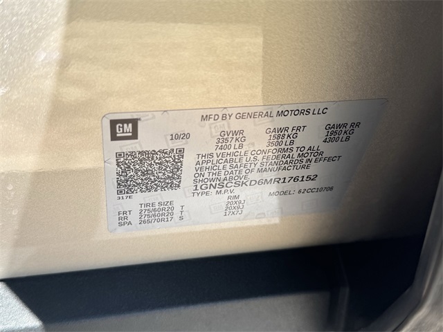 - VIN : 1GNSCSKD6MR176152