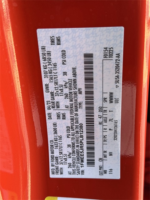 - VIN : 1FMEE5JR5PLB12380